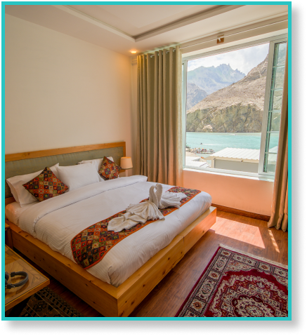 Explore our elegant restaurant with its stunning views of Attabad Lake and the surrounding mountains.